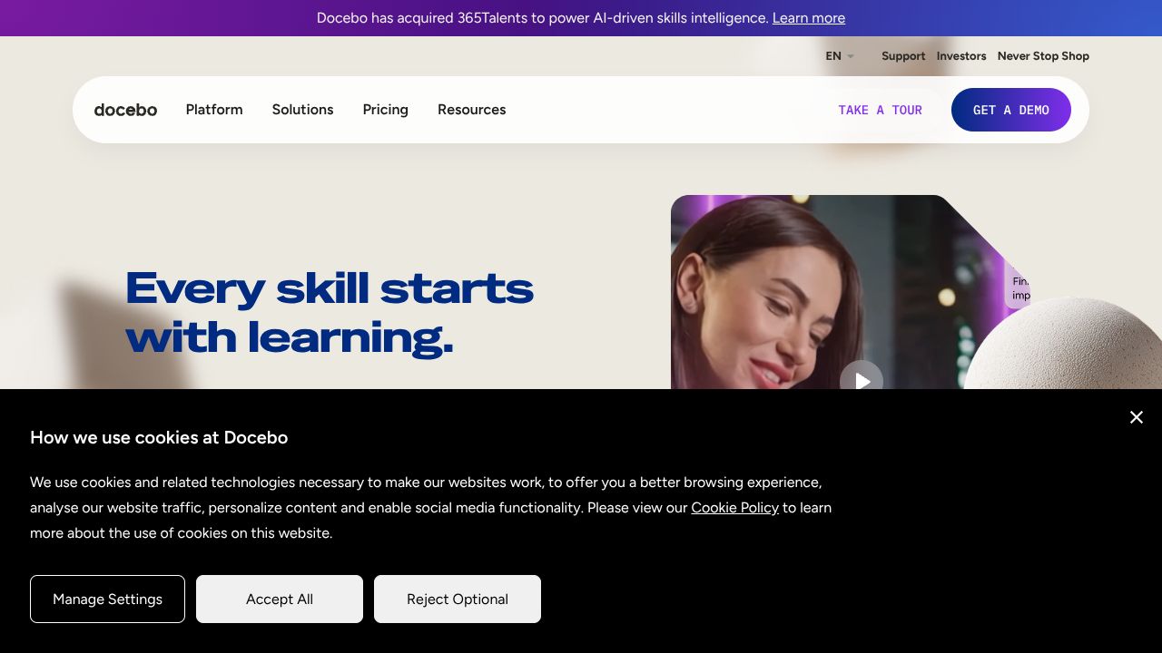 Docebo is a workplace learning platform with AI-driven content curation, virtual coaching, and personalized paths, building communities around structured training and real-time guidance.